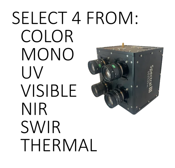 Lens Mount:C-mount Sensor Type:CMOS Sensor Model:AMS CMV4000 Sensor Format:1-inch Number of Spectral Channels:1-8 Image Pixels Per Spectral Channel: 1 band: 2048 x 2048 2 bands: 2048 x 512 4 bands: 512 x 512 8 bands: 256 x 256 Effective Pixel Size (H x V):5.5 µm x 5.5 µm Capture Method:Area or Line Spectral Channels:User selected Spectral Bandwidth (FWHM):~25 nm On-chip Spectral Enhancement:Anti-X-Talk™ Technology Shutter Type:Global Sync System:External trigger (Hardware, Software) / Free run Maximum Frame Rate (at Full Frame): 8bits output 178 fps 10bits output 90 fps 12bits output 74 fps