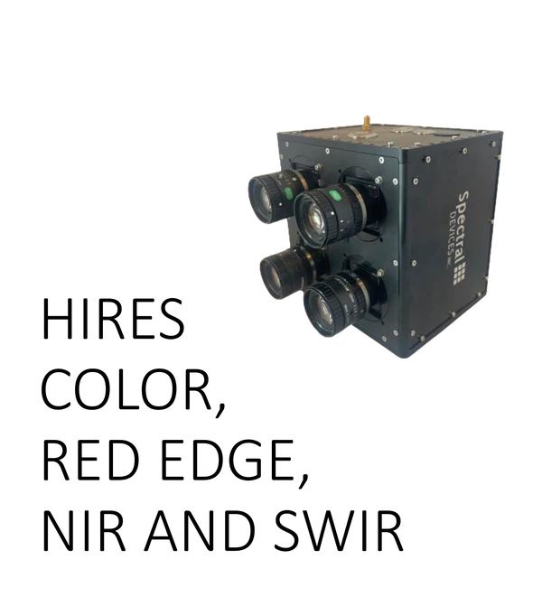 Number of Bands:6 Band Locations:440, 510, 600, 725, 800, 1500 Pixel/Band:NIR, Red Edge, Color: 2448x2048px, SWIR: 1280x1024px Weight:1.7 kg