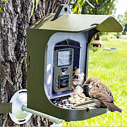 水入れ付きのエサ台が付属している自動カメラ センサー:1/3.2"" CMOS 8MP レンズ焦点:6-15cm(固定) 視野角:100° スローモーションビデオ撮影:最大25FPS PIRセンサー(〜20cm) IR範囲(〜50cm) 電源:4x AA電池(単3電池)