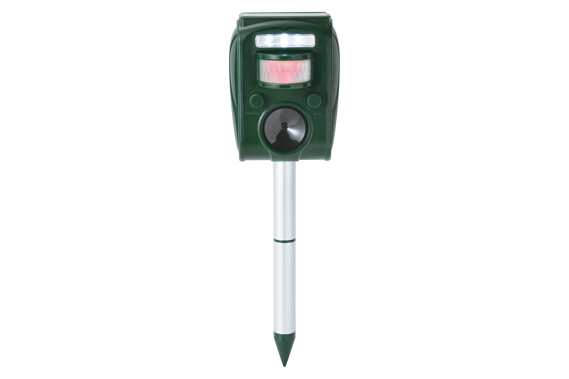 赤外線センサー:平角度 120度、上下角度 55度 誘導距離:8~9m センサー感知時の作動時間:約30秒 充電時間:ソーラーパネル 約10~12時間 / USBケーブル 約8時間 電源:充電式ニッケル水素電池 単三形800mAh×3個 (USBケーブルでの充電可) 周波数:13.5kHz~45.5kHz