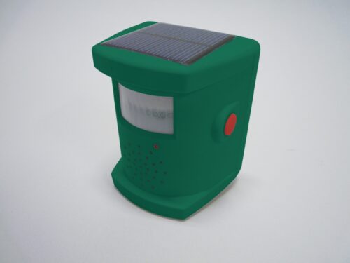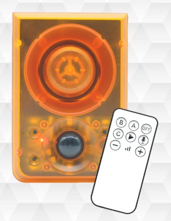 音声による警報・防除 検知方式:赤外線センサー 検知範囲:高さ3m×左右120°、距離5~8m 音圧:130dB 防水等級:IP55