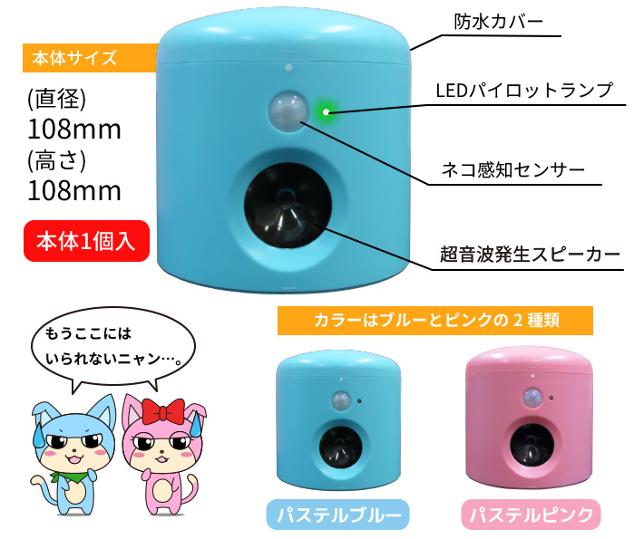 超音波で防除 センサー:バッシブ赤外線センサー 感知範囲:6m~8m 90° 超音波周波数:19~24kHz変動