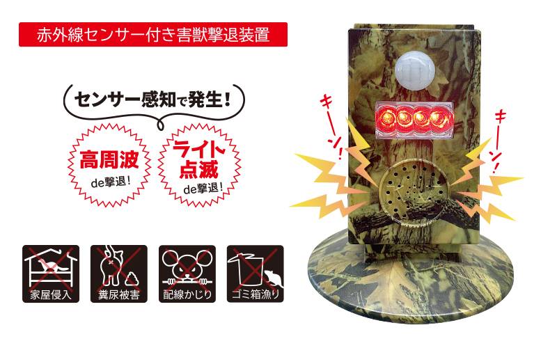音声とフラッシュライトで防除 感知方式:赤外線センサー