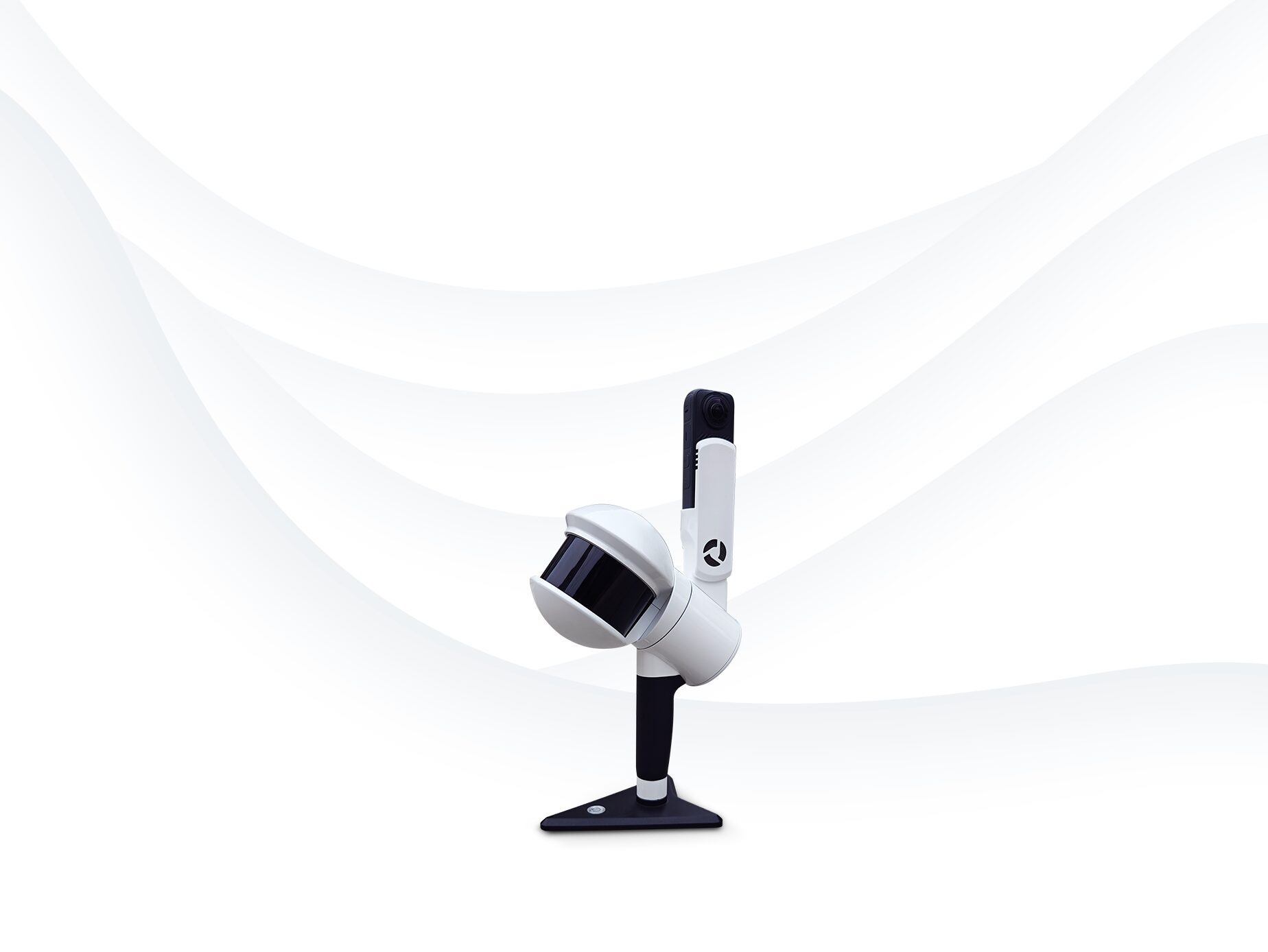 LiDAR、パノラマカメラ、ビジュアルSLAMカメラ、GNSSアンテナを統合 スキャン範囲:300m 絶対精度:< 3㎝ LiDARスキャンレート 640,000 ポイント/秒 パノラマカメラ:12MP×2 VSLAM:1.3MP×2 視野角:280°×360° 重量:2.2kg