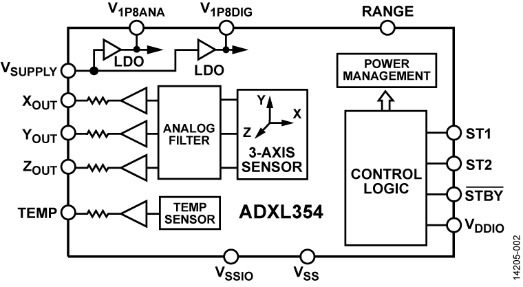 高精度、低 g、デジタル 3 軸加速度センサー ±16 ビット分解能で 14.2g フルスケール・レンジ(0.434 mg/LSB) オプションのデータ FIFO 付きで 2 kHz 出力サンプル・レート プログラマブル・フィルタ応答 20 Hz、46 Hz、92 Hz、184 Hz 連続の電子機械式セルフ・テスト 追加のキーオンおよびオン・デマンド・セルフ・テスト・ルーチン 高性能、3 軸デジタル出力加速度センサー 温度補償、高精度ゼロ g バイアス、高感度性能 X/Y/Z 軸オフセット調整 低静止電流引き込み 高直線性性能 温度範囲: −40°C 〜 +105°C