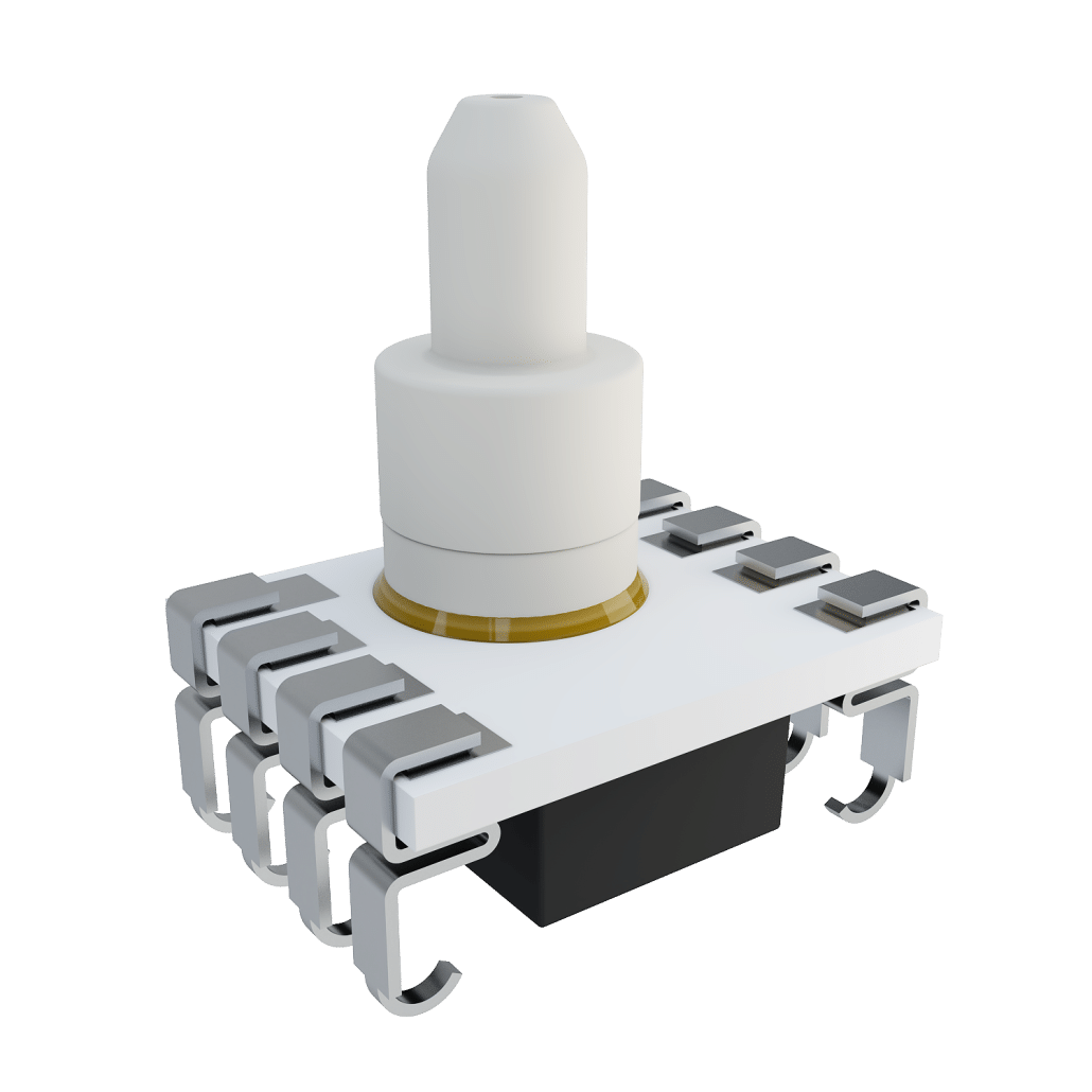 プリント基板へのはんだ付けや標準チューブへの接続が容易な、極低圧用センサ 圧力範囲:高さ0.6~28インチ2O / 0.15~7 kPa / 0.02~1 psi / 1.5~70 mbar 精度:±1.5%FSO 温度範囲:-40〜85°C 圧力タイプ:差動ゲージ/ゲージ 出力:デジタルI2Cまたはアナログ0.5~4.5Vdc メディア:清潔で乾燥した空気と非腐食性ガス