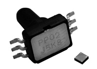 超小型で低消費電力のMEMSゲージ圧センサ 長さ6.1mm×幅4.7mm×高さ8.2mmの超小型。 容量式圧力センサに比べ、優れた電気的特性。 測定圧力範囲は0~37kPa。 オフセット電圧:-2.5±4mV スパン電圧:31.0±3.1mV 0.2mWの低消費電力。 温度影響が小さい。 スパン電圧:±1.0 %F.S. オフセット電圧:±3.0%F.S.